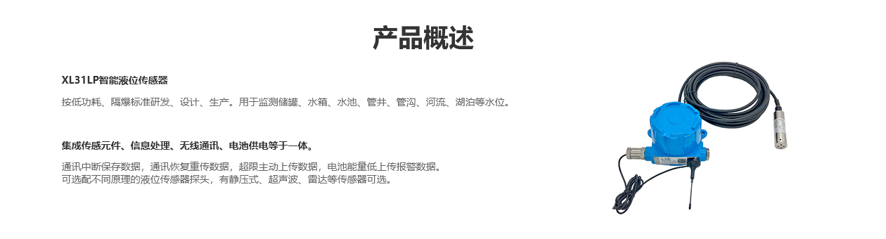 XL31LP智能液位傳感器,是按低功耗、隔爆標準研發(fā)、設計、生產(chǎn)。用于監(jiān)測,儲罐,水箱、水池,管井、管溝,河流、湖泊,等水位。