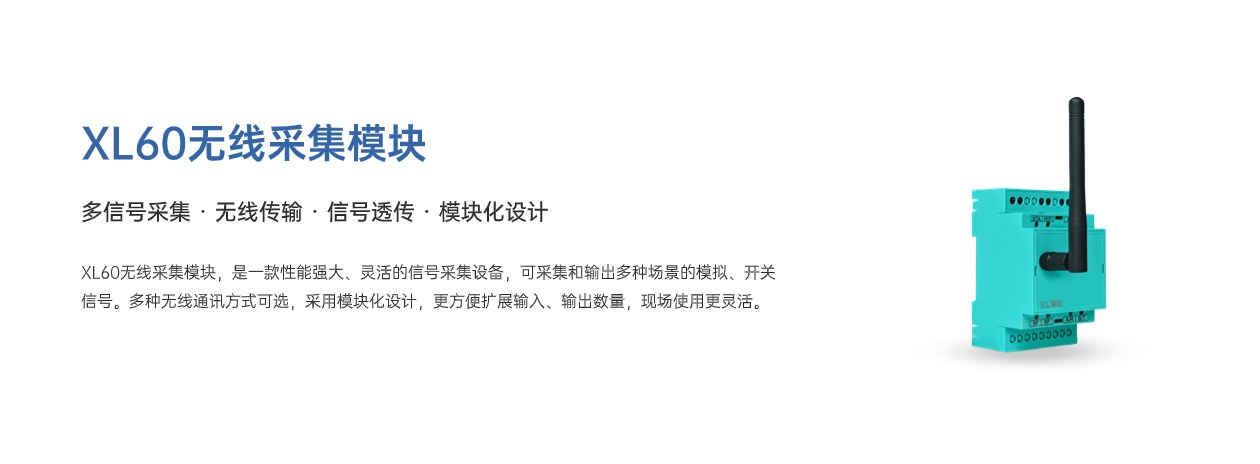 XL60無線采集模塊,采集模擬、開關(guān)信號(hào),輸出模擬、開關(guān)信號(hào),可選多種無線通訊方式。模塊化設(shè)計(jì),更方便擴(kuò)展輸入、輸出數(shù)量。
