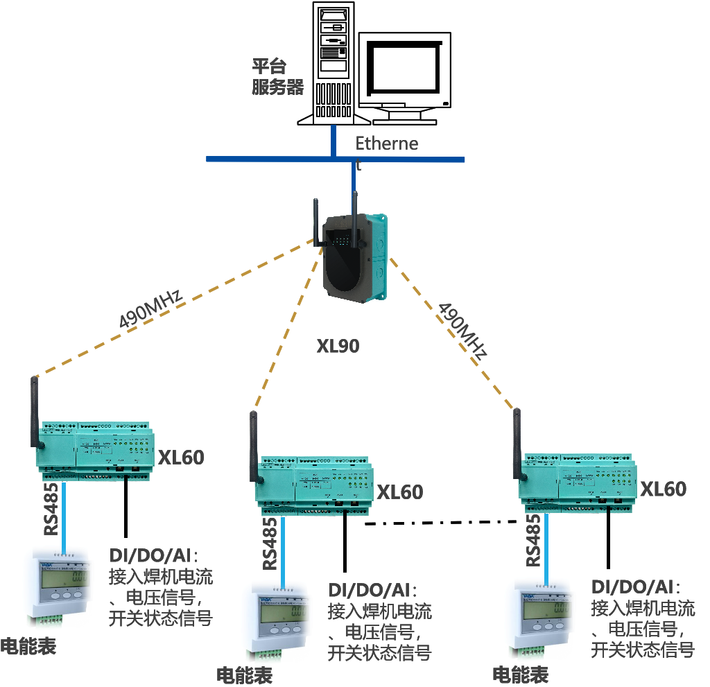 建議每32臺(tái)焊機(jī)配1臺(tái)XL90網(wǎng)關(guān);每臺(tái)焊機(jī),配1臺(tái)XL60