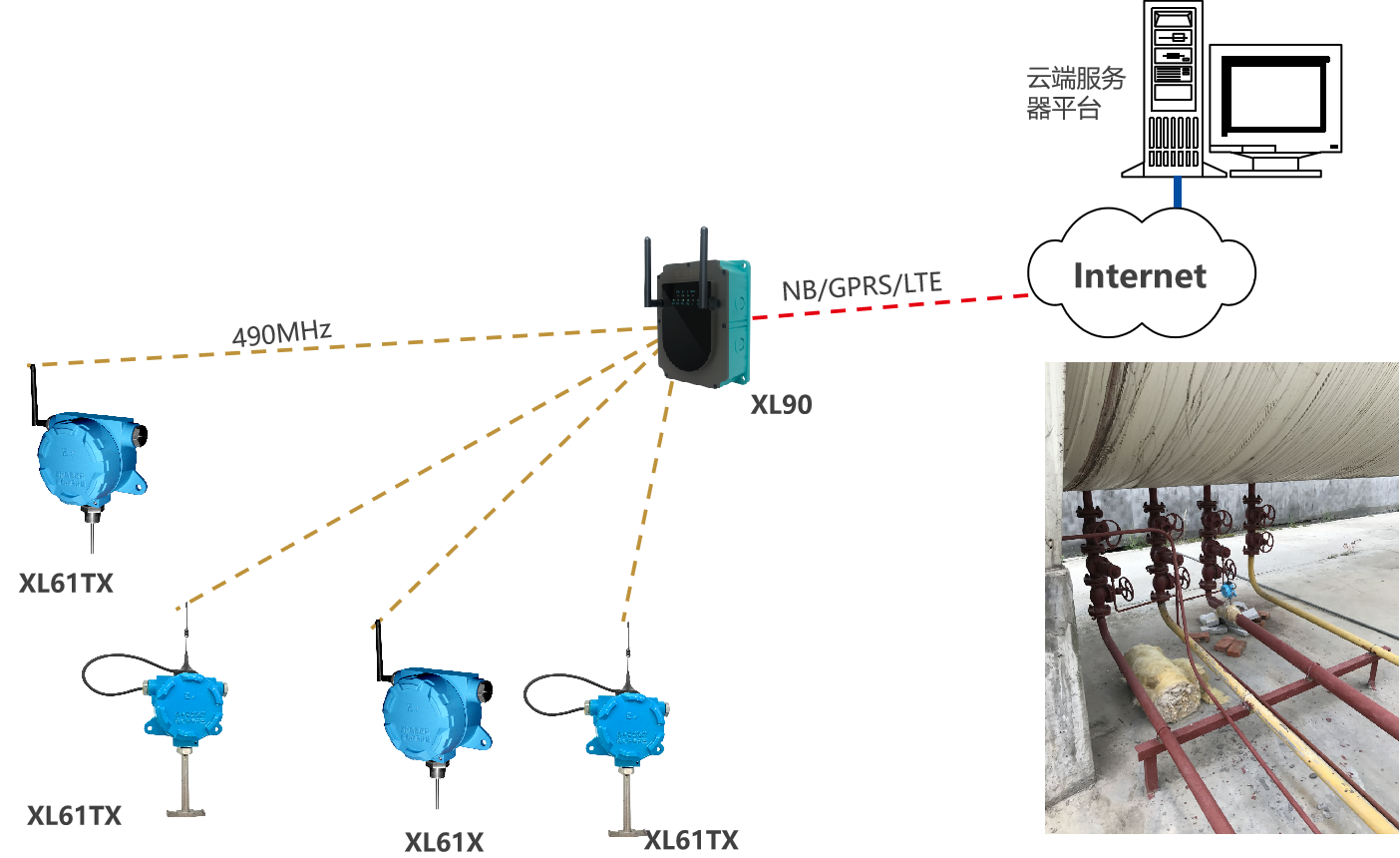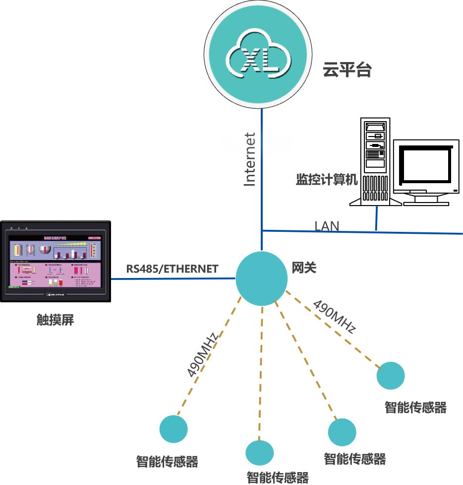 選擇XL90物聯(lián)網(wǎng)關(guān),無(wú)線讀取監(jiān)測(cè)點(diǎn)的數(shù)據(jù),進(jìn)行協(xié)議、通訊轉(zhuǎn)換后,推送至上層軟件平臺(tái)