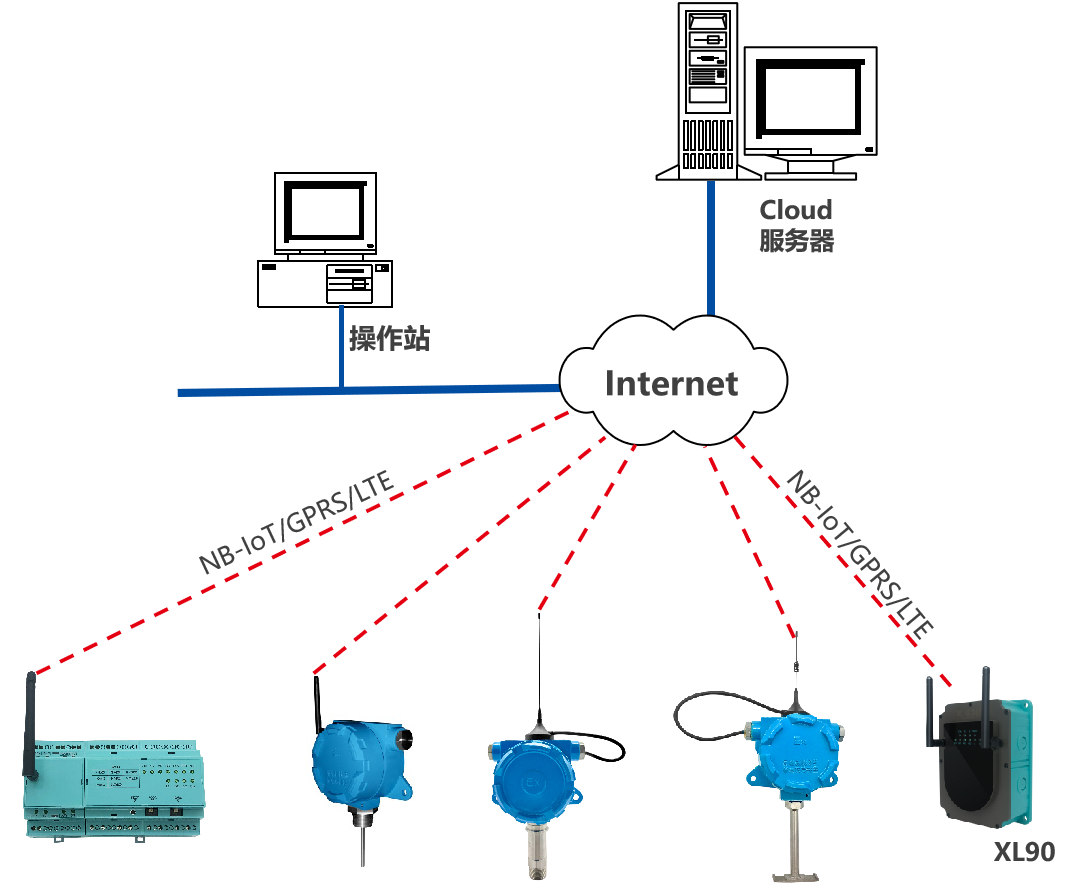 XL90,將數(shù)據(jù)上傳給企業(yè)內(nèi)部的多個系統(tǒng)軟件平臺;通過LTE(4g)/NB/GPRS將數(shù)據(jù)上傳至云服務(wù)器
