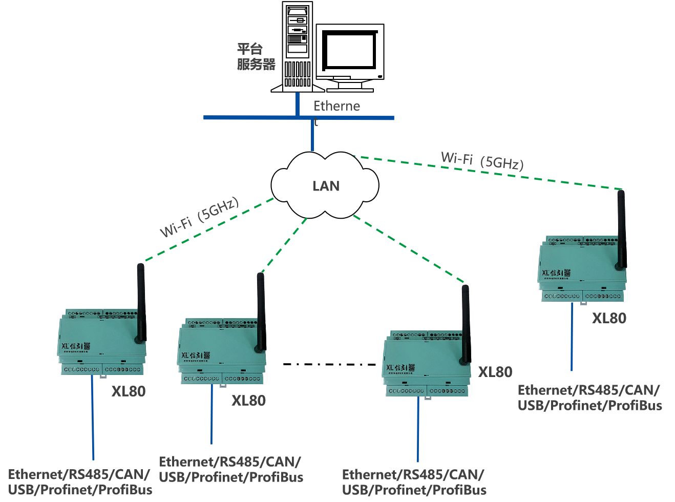 XL80智能主機(jī),通過(guò)Ethernet、CAN、USB、Profibus、 Profinet、RS485等接口,讀取數(shù)據(jù);支持Wi-Fi傳輸