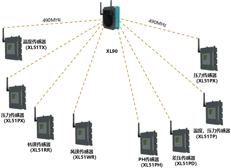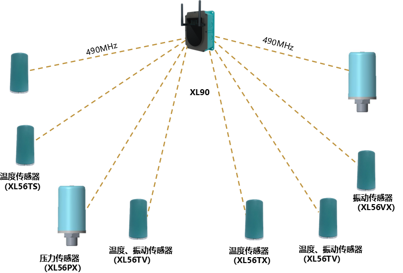 1臺XL90物聯(lián)網(wǎng)關,構建兩個獨立的LoRa通訊網(wǎng)絡,可接入64(理論上不受限制)臺智能傳感器