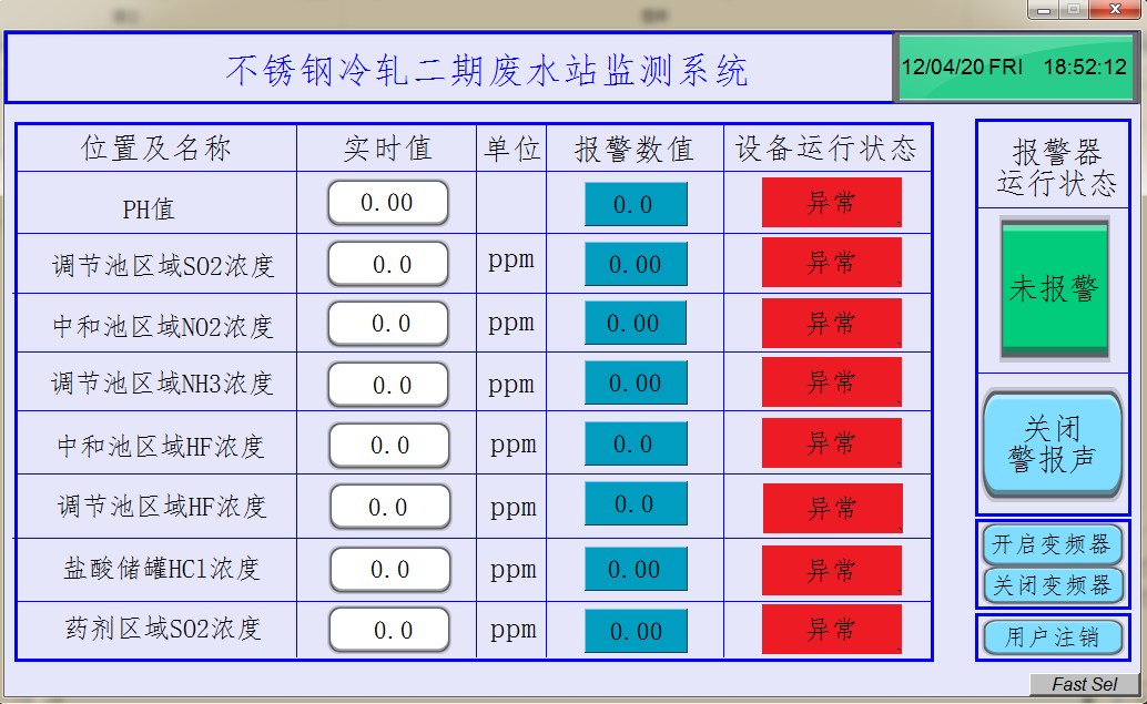 圖2 廢水站監(jiān)測系統(tǒng)主界面