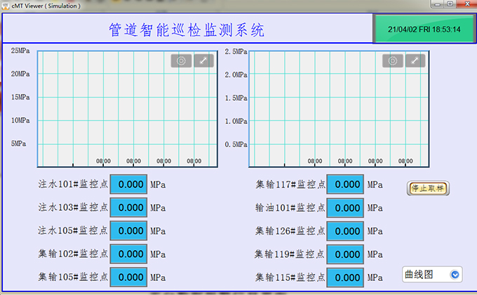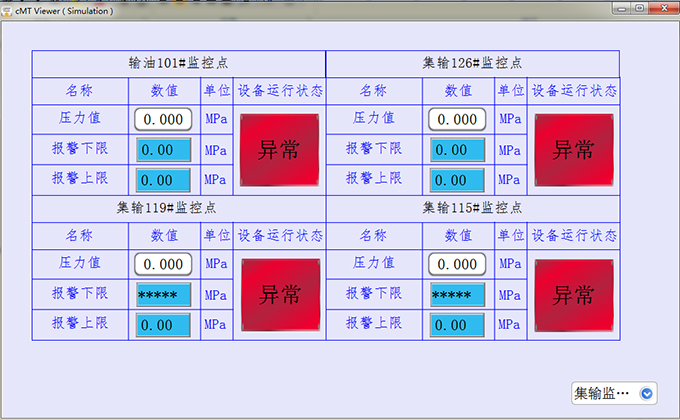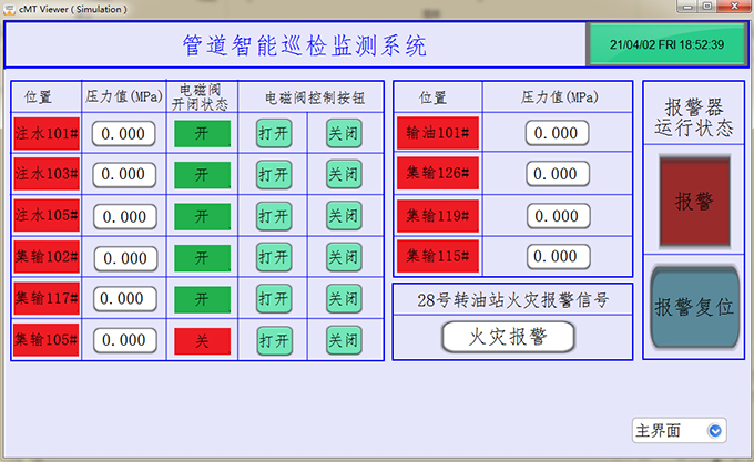 當(dāng)出現(xiàn)壓力過大時(shí),中控室會(huì)發(fā)出聲光報(bào)警提醒工作人員,工作人員可通過觸摸屏上的按鈕關(guān)閉或打開閥門,防止原油泄漏。大大降低的安全事故,節(jié)省了人工成本。
