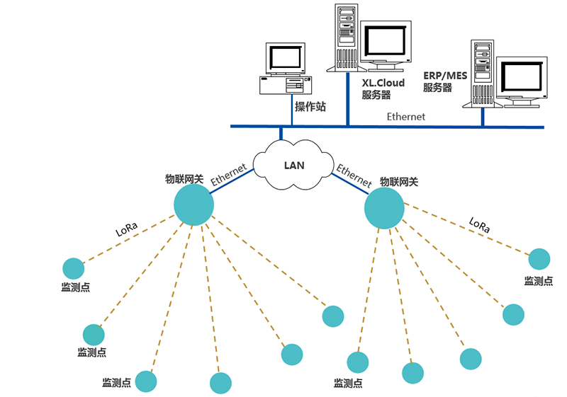 通信網(wǎng)絡(luò)設(shè)計:在每個配電室,或是監(jiān)測點較集中的區(qū)域,安裝XL90物聯(lián)網(wǎng)關(guān):