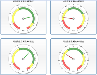 (6)監(jiān)測(cè)軟件采用工業(yè)組態(tài)開(kāi)發(fā),具有性能穩(wěn)定、功能豐富、組態(tài)靈活,擴(kuò)展方便等諸多優(yōu)點(diǎn)。如可以根據(jù)傳感器分布提供軟件界面,在界面上區(qū)分傳感器位置、布局、每個(gè)監(jiān)測(cè)點(diǎn)位置等按照實(shí)際布局安排,確保監(jiān)測(cè)界面的生動(dòng)形象。