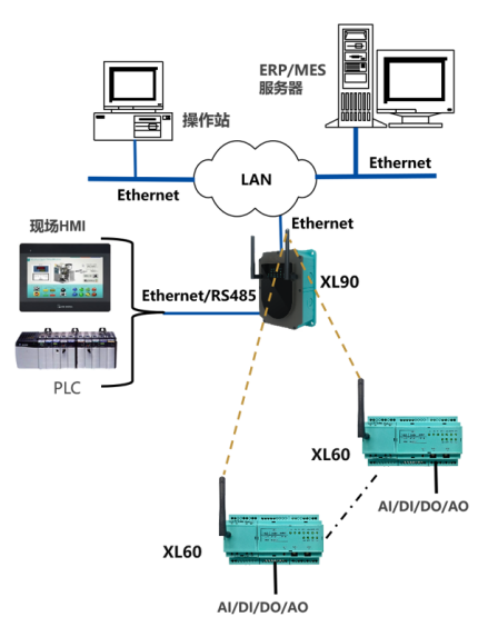 XL60無線采集裝置,采集模擬、開關信號,輸出模擬、開關信號;支持多種無線通信方式: