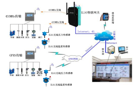 2、傳輸層:傳輸層主要有物聯(lián)網關、無線采集裝置、無線壓力變送器、無線溫度傳感器、NB、4G、射頻無線傳輸網絡組成。