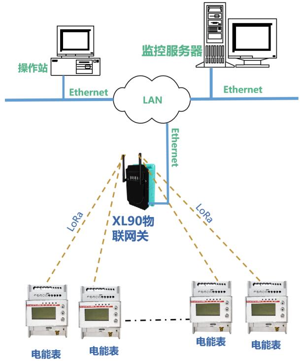 l 選擇DTSD3366XX/XL系列無(wú)線(xiàn)電能表,配置LoRa通信,分布在車(chē)間、工廠(chǎng)各點(diǎn)的用電數(shù)據(jù),無(wú)線(xiàn)匯聚到網(wǎng)關(guān),接入監(jiān)控服務(wù)器,降低施工費(fèi)用,減少了更多的麻煩。