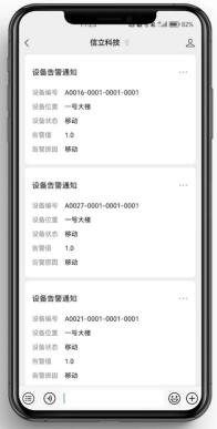 報警信息通過微信公眾號推送給管理人員,隨時隨地掌握現(xiàn)場設備動態(tài),無需通訊費用,更省成本。