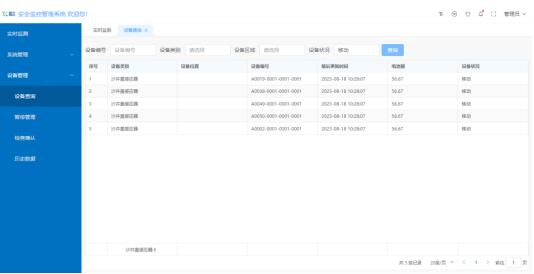 可根據(jù)設備編號、類別、區(qū)域、狀態(tài)等條件,篩選查詢需要查看的設備信息;