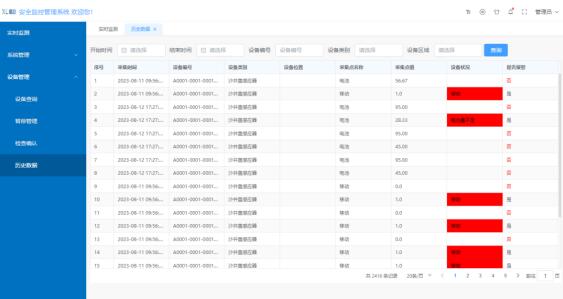 可篩選某個日期、設備編號、類別、區(qū)域的歷史數(shù)據(jù),一鍵導出為表格,便于分析、管理。