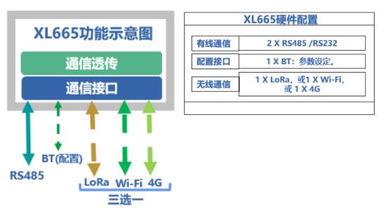 采用XL665無線轉化器,將一路RS485的輸出,轉換成一路RS485輸出和一路LoRa無線輸出,可同時與兩個系統(tǒng)或設備通信傳輸數(shù)據(jù)。