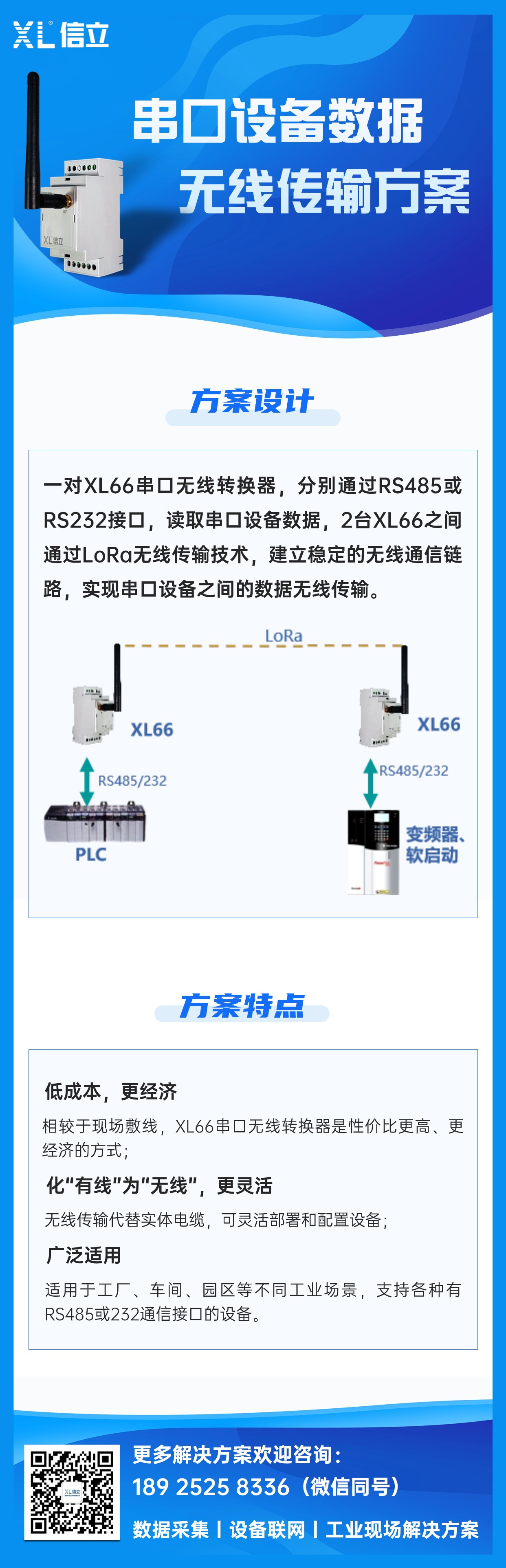 2臺(tái)XL66串口無線轉(zhuǎn)換器,實(shí)現(xiàn)無線透傳功能,代替實(shí)體電纜,實(shí)現(xiàn)串口設(shè)備之間的數(shù)據(jù)無線傳輸,簡單、經(jīng)濟(jì)!